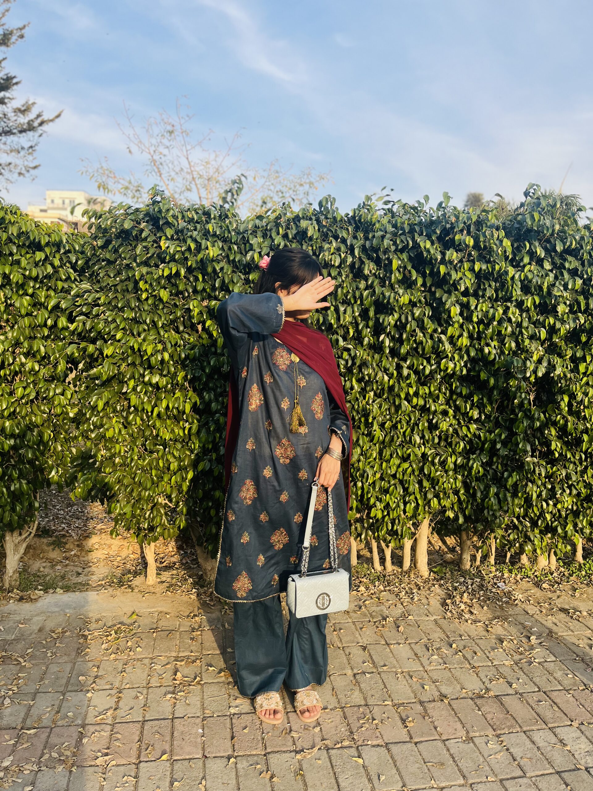 An exquisite ensemble crafted to reflect timeless elegance with a contemporary touch. This stunning outfit features a gracefully tailored embroidered long shirt paired with a voluminous trouser, creating a regal and flattering silhouette. Intricate lace detailing on the trouser, sleeves, and daman elevates the design, making it a perfect choice for festive gatherings and refined daywear. Designed to offer both comfort and sophistication, this outfit is a true wardrobe essential.